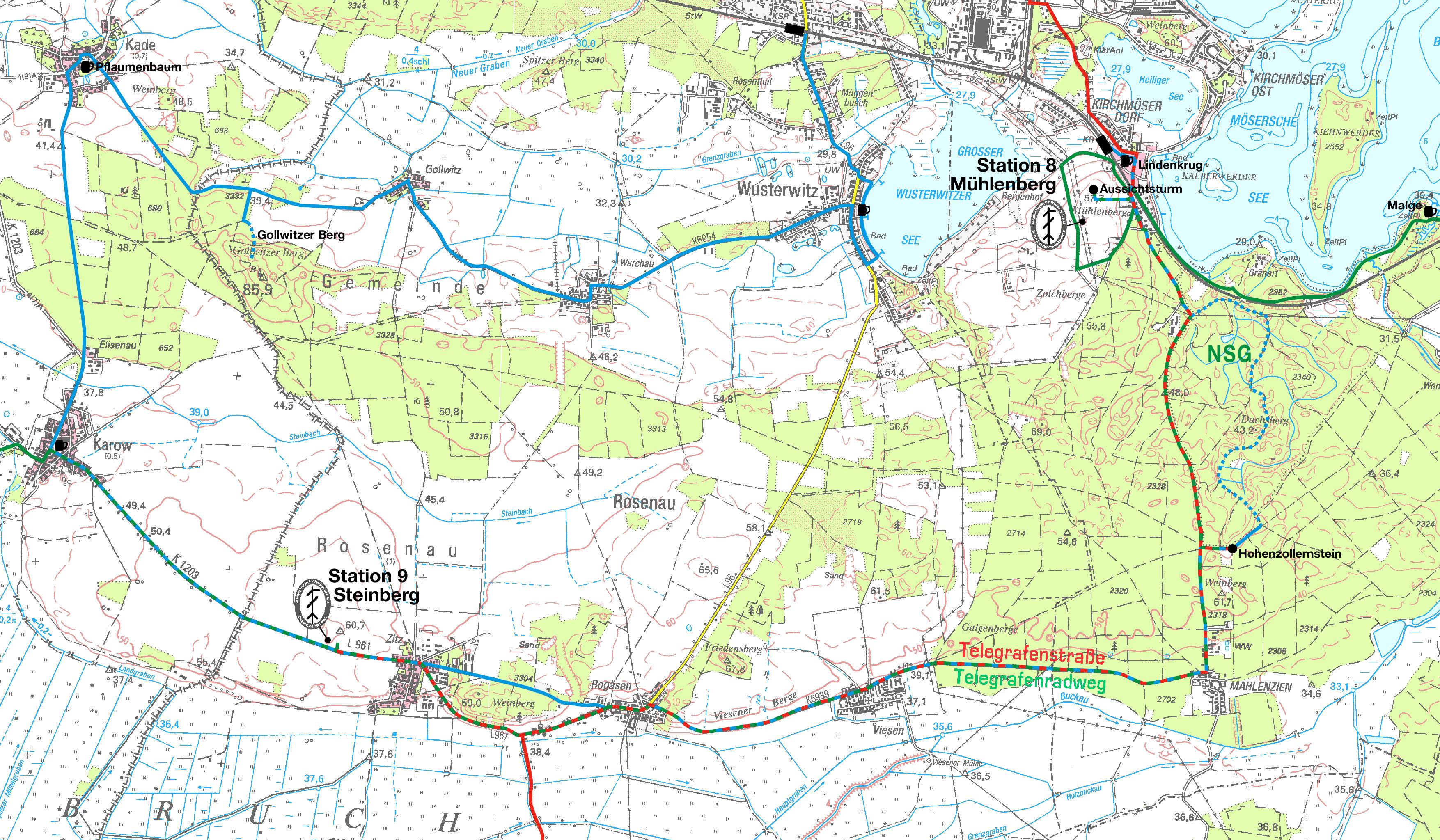 - The Gollwitzer Berg near the village of Gollwitz, which belongs to Rosenau, is the highest point on the Karower Platte at 85.9 meters.